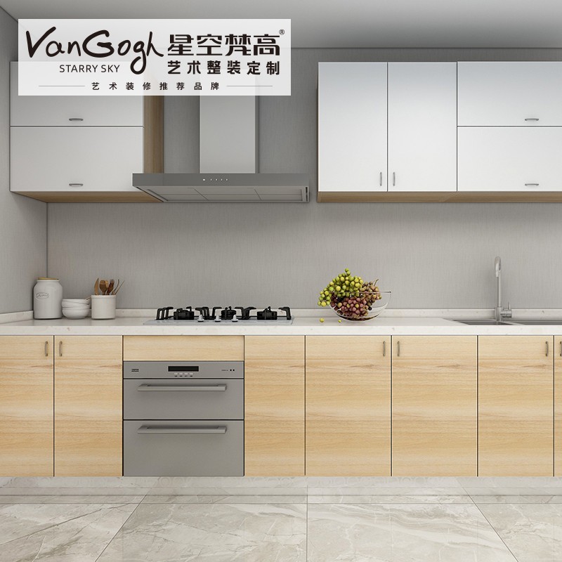 【星空梵高】現(xiàn)代簡約 石英石臺面 整體定制櫥柜 巴克卡爾·玉石白+艾格黃橡櫥柜