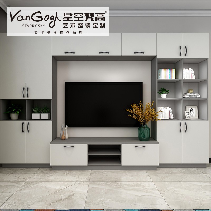 【星空梵高】現(xiàn)代簡約整體定制電視柜 梅爾海辛·羊脂白電視柜