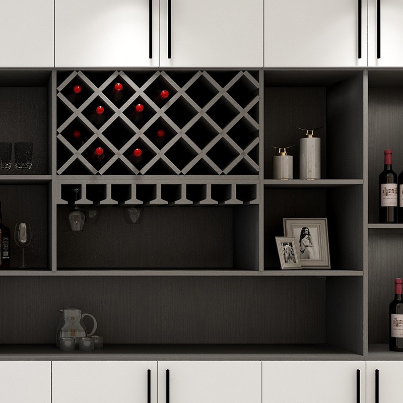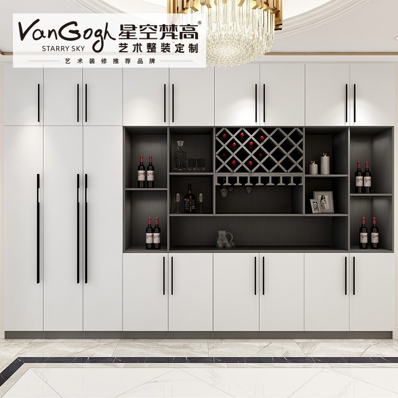 【星空梵高】現(xiàn)代簡約整體定制酒柜 蒙斯陽光·黑木卡其+玉石白酒柜