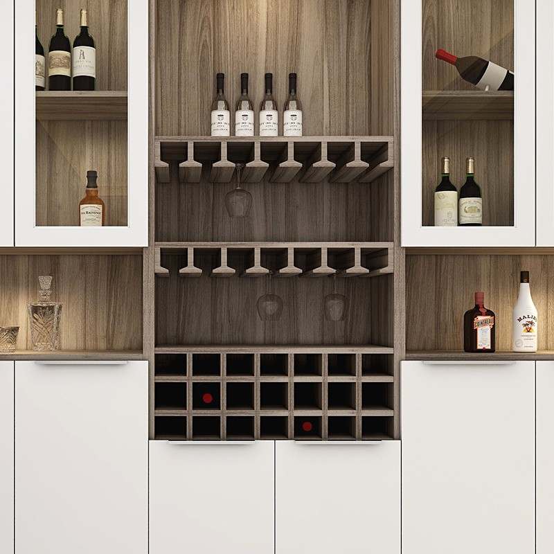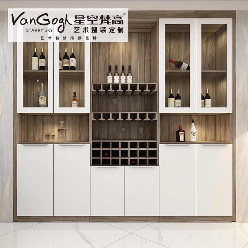 【星空梵高】現(xiàn)代簡(jiǎn)約整體定制酒柜 塔特森林·邁阿密胡桃+玉石白酒柜