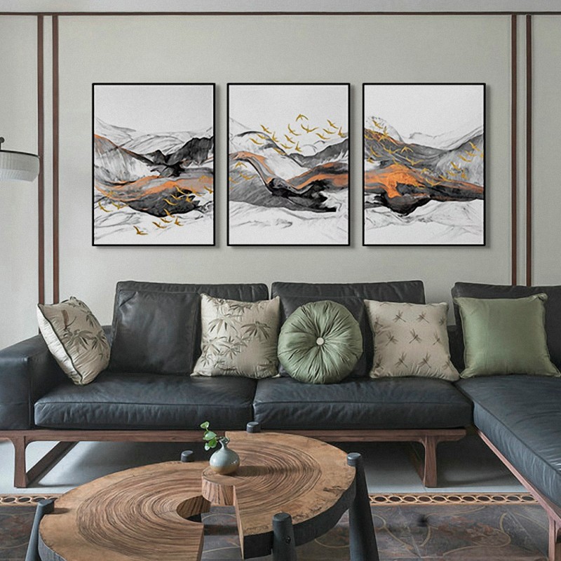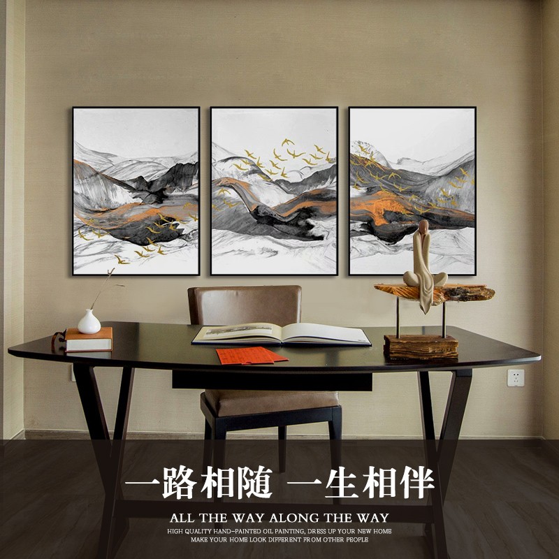 現(xiàn)代簡(jiǎn)約客廳三聯(lián)裝飾畫沙發(fā)背景墻組合畫 純手繪油畫 一路相隨