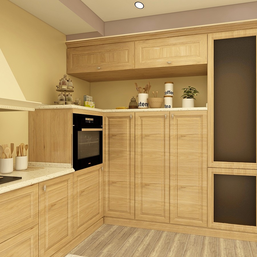 【星空梵高】現(xiàn)代簡(jiǎn)約整體定制櫥柜石英石臺(tái)面 包覆-顆粒橫紋木