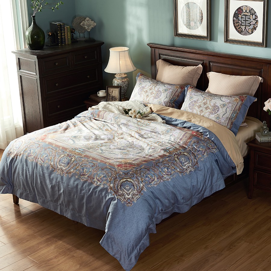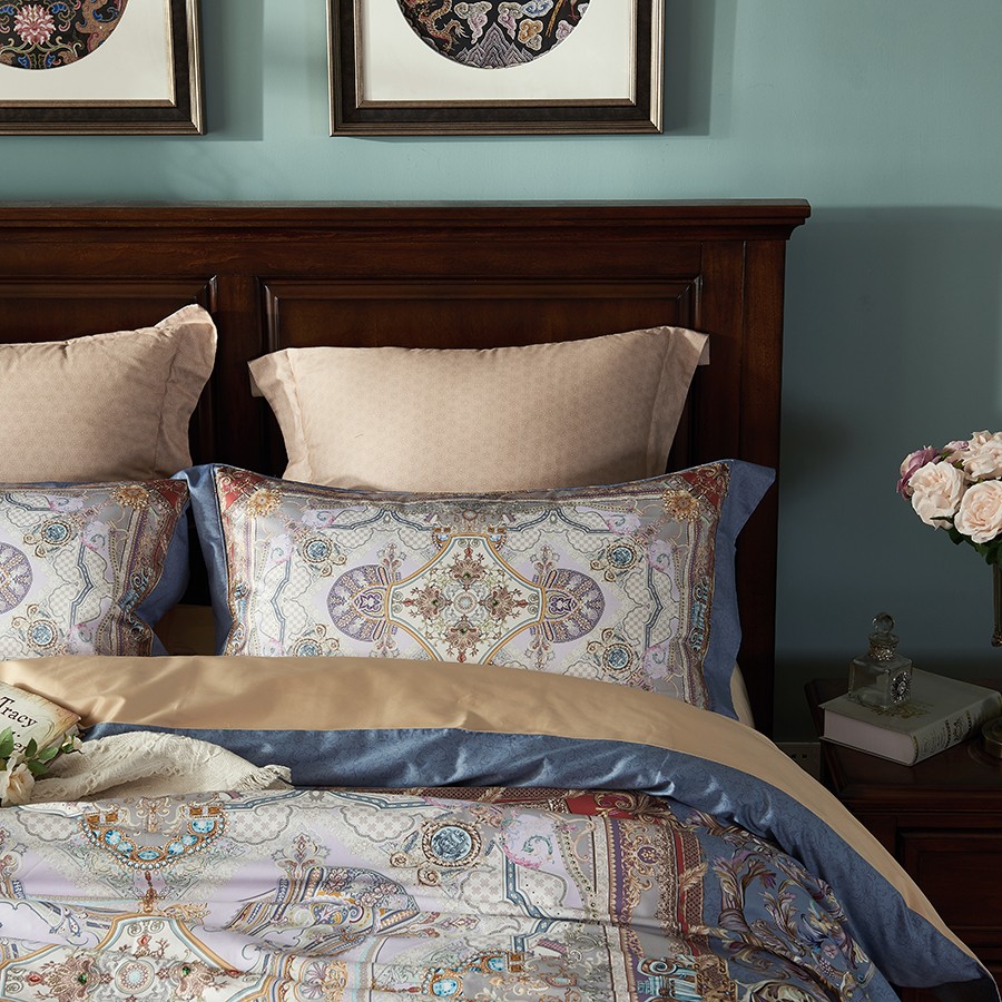床上用品 純棉四件套 蕾絲工藝 數(shù)碼印花系列 錦繡時光(藍(lán))