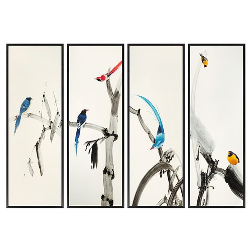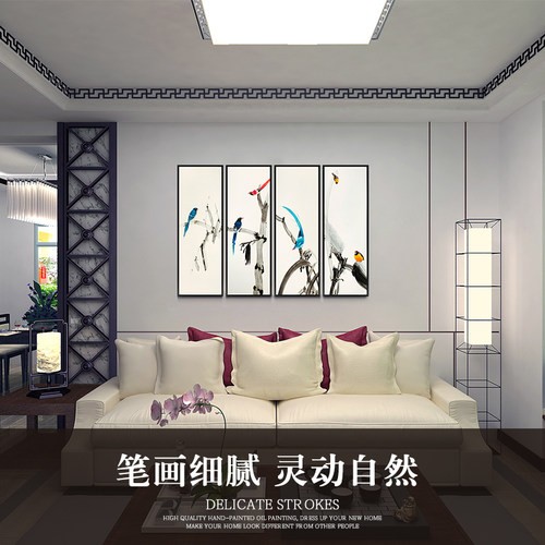 新中式手繪藝術裝飾畫客廳臥室掛畫 鳥語枝頭
