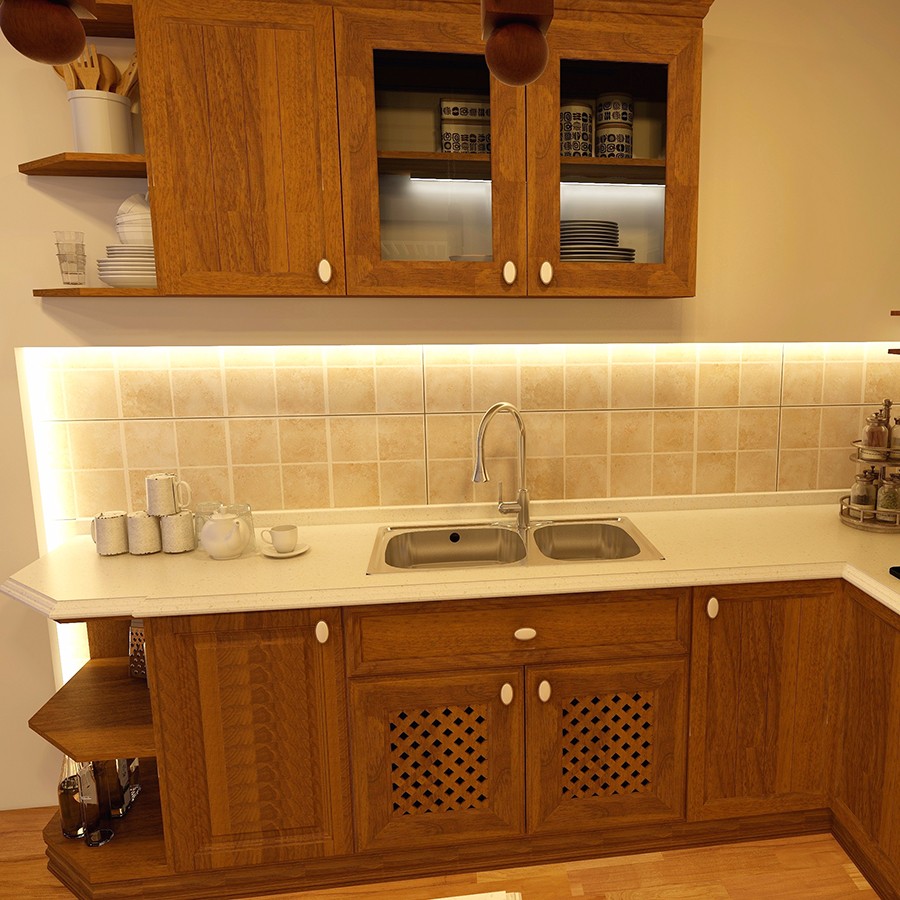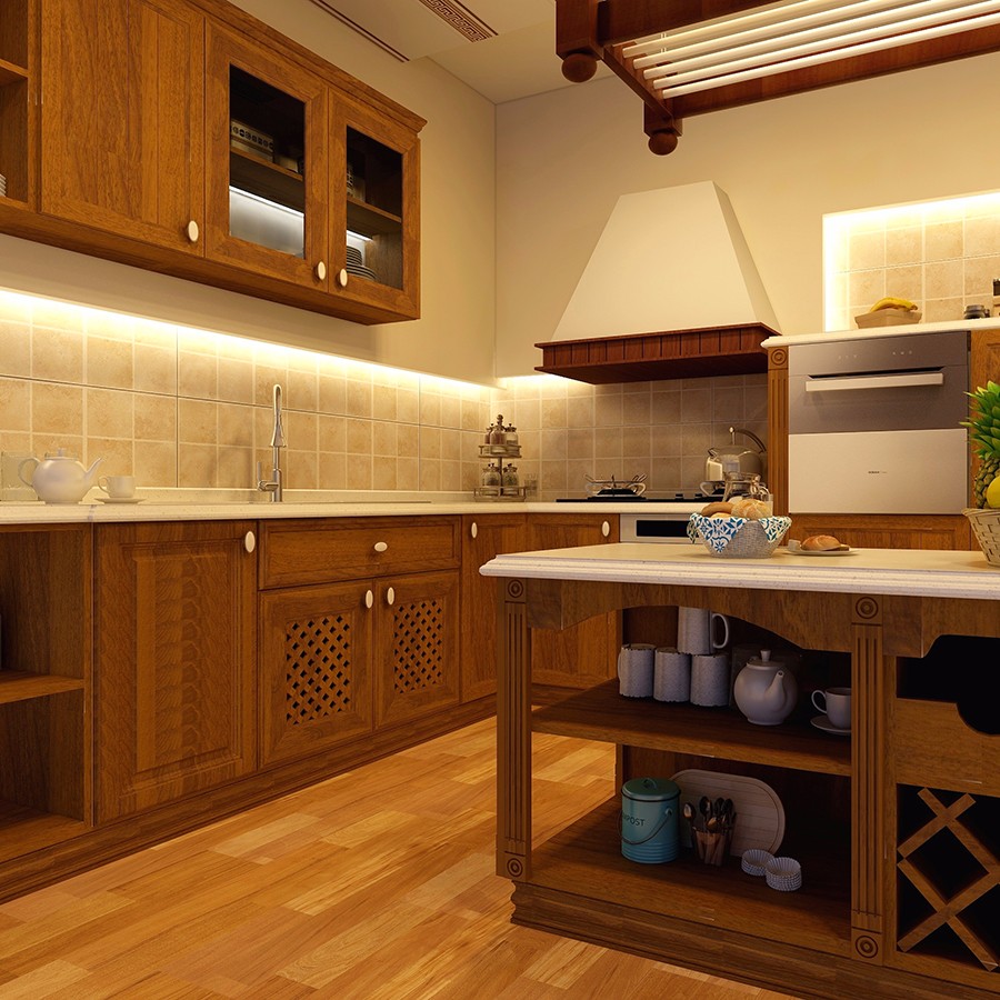 【星空梵高】現(xiàn)代簡(jiǎn)約整體定制櫥柜石英石臺(tái)面 實(shí)木-胡桃木