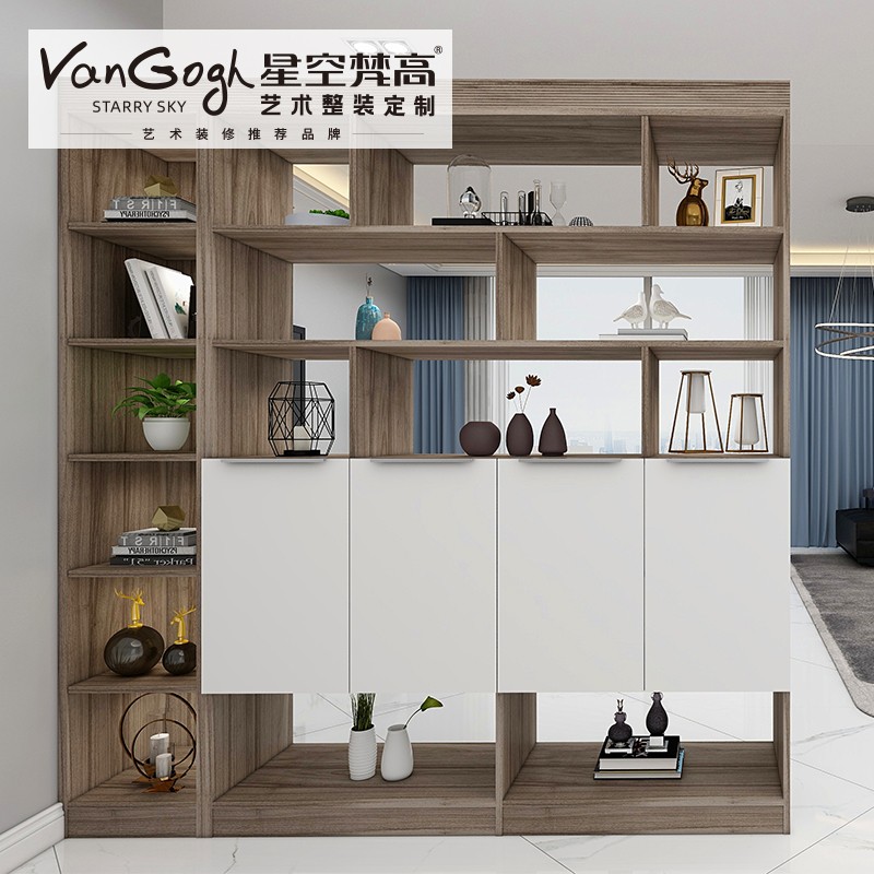 【星空梵高】現(xiàn)代簡約整體定制玄關柜 塔特森林·邁阿密胡桃+玉石白玄關柜