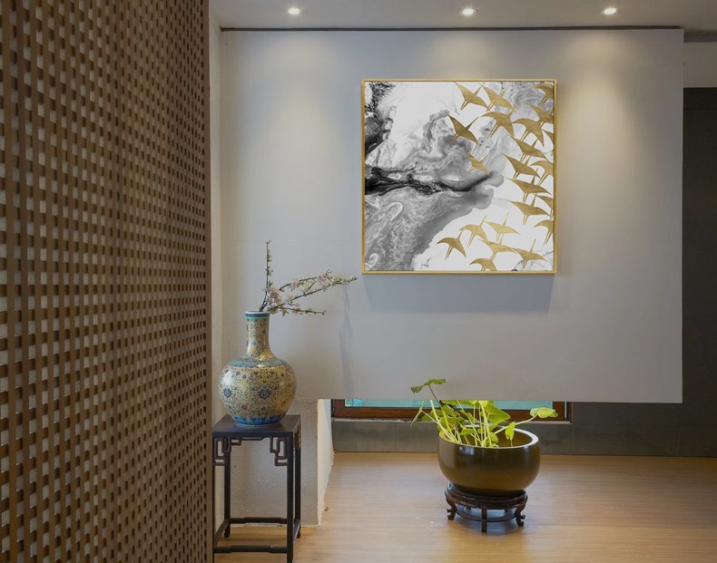 輕奢客廳臥室餐廳走廊玄關(guān)掛畫晶瓷畫 純手繪油畫 燕歸巢