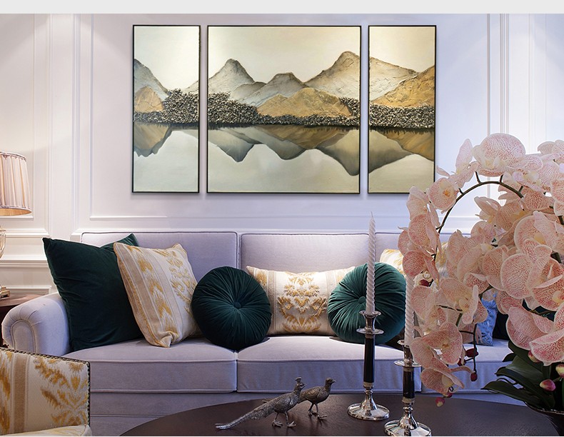 現(xiàn)代簡約沙發(fā)背景墻客廳裝飾畫三聯(lián)掛畫臥室純手繪油畫 湖光山色