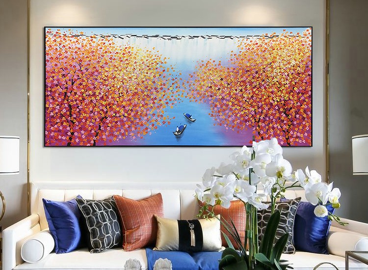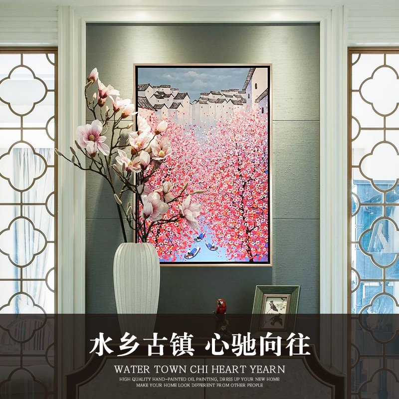 純手繪油畫 現(xiàn)代新中式客廳玄關(guān)裝飾畫風(fēng)景畫掛畫壁畫 紅色水鄉(xiāng)