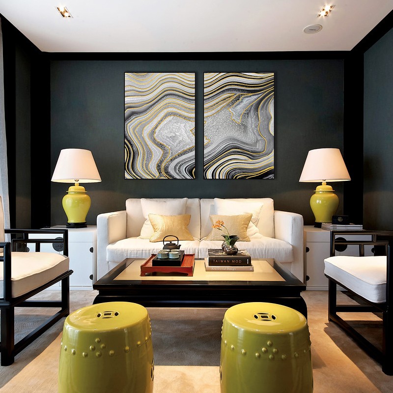 客廳沙發(fā)背景墻抽象組合裝飾畫(huà)玄關(guān)走廊晶瓷畫(huà)墻畫(huà) 純手繪油畫(huà) 鎏金盆地