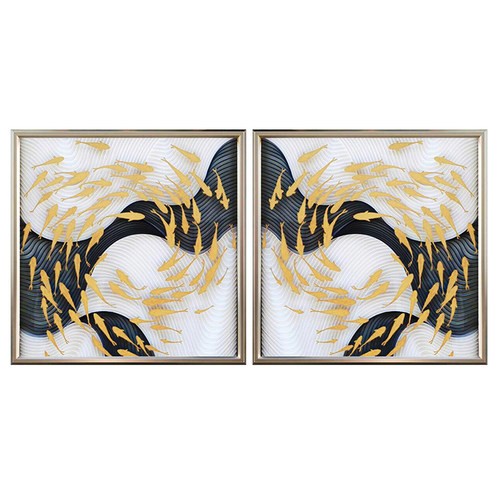 輕奢玄關(guān)裝飾畫實物畫餐廳壁畫客廳組合掛畫墻畫 遨游組合畫