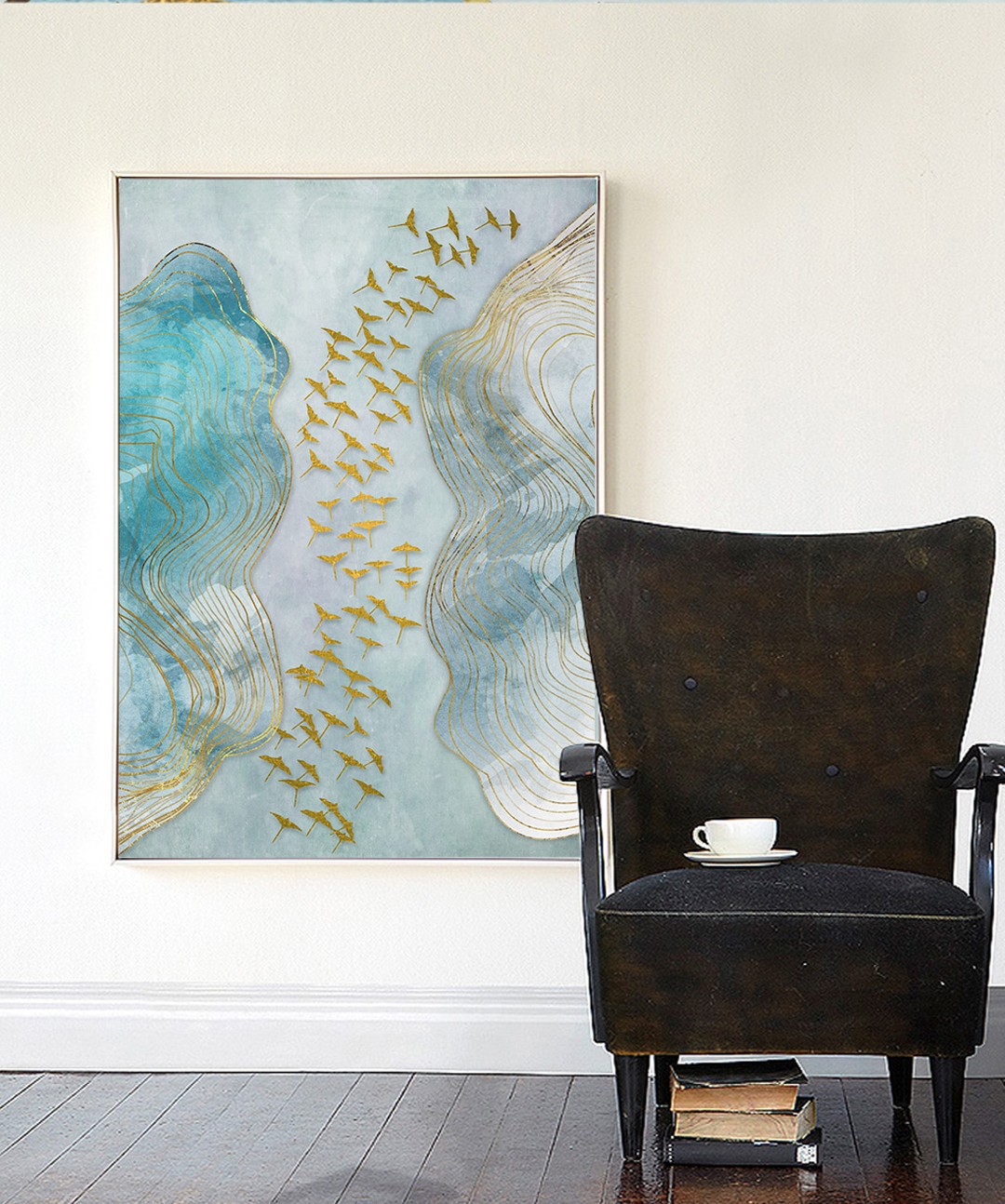 現(xiàn)代簡(jiǎn)約抽象畫客廳掛畫臥室藝術(shù)裝飾畫手繪油畫 金雁過(guò)境