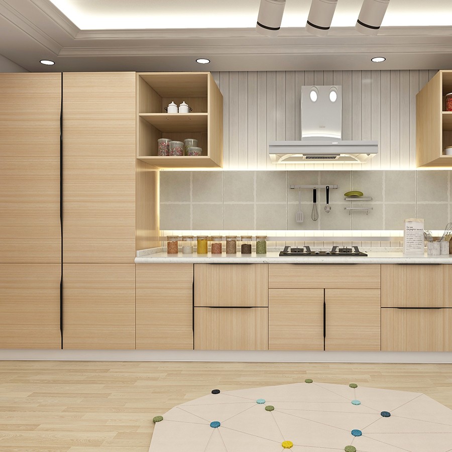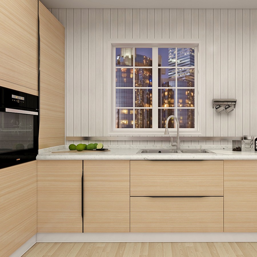 【星空梵高】現(xiàn)代簡約整體定制櫥柜石英石臺面 雙飾面-顆粒橫紋時光胡桃