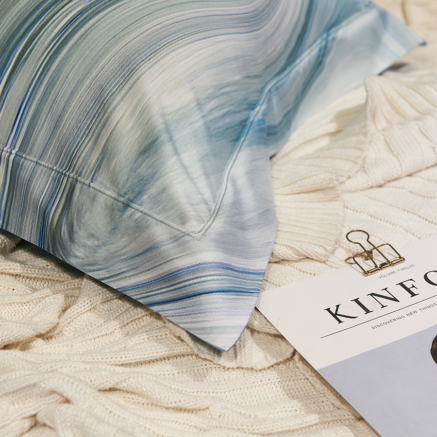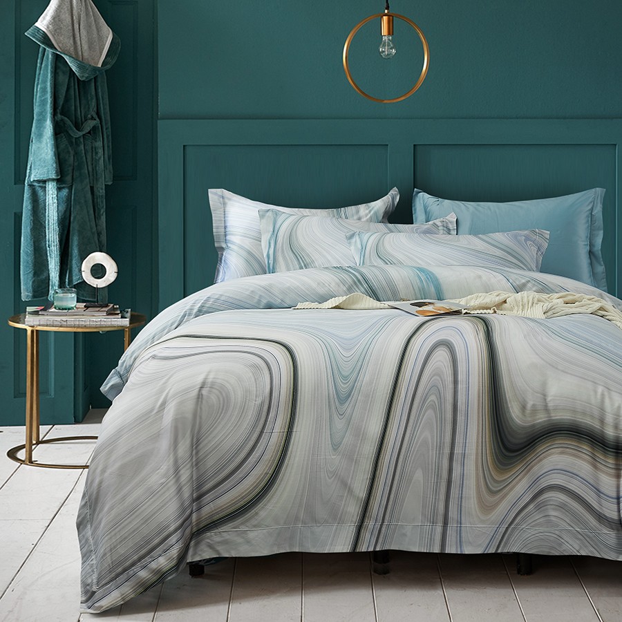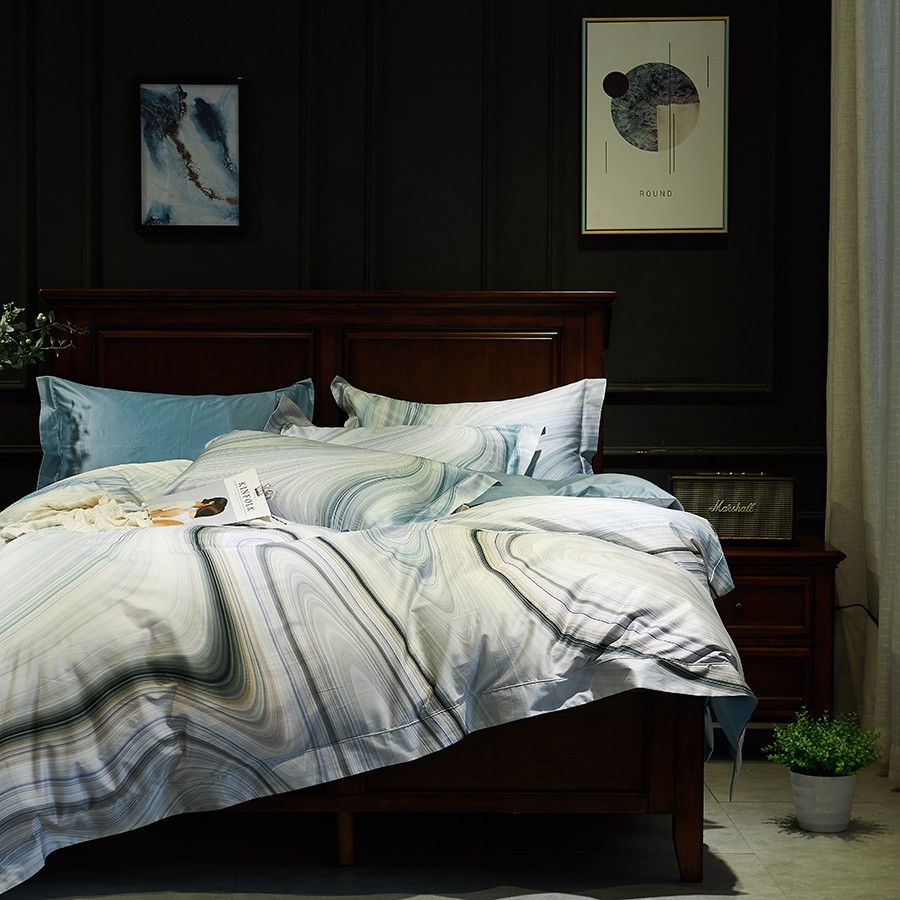 床上用品 純棉四件套 蕾絲工藝 數(shù)碼印花系列 巖棲谷隱(湖藍)