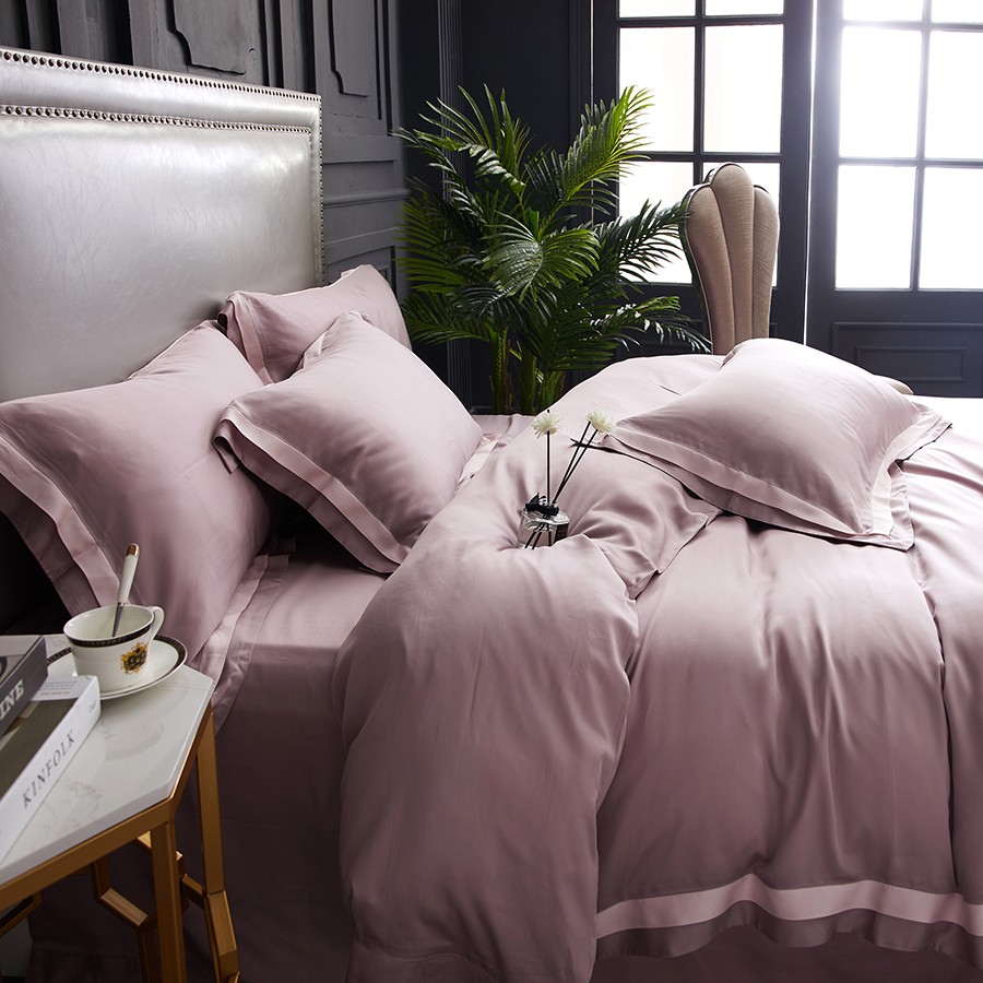 床上用品 純棉四件套 蕾絲工藝 60天絲純色工藝系列 豆沙