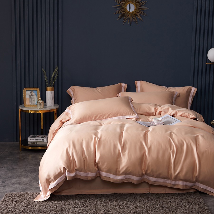 床上用品 純棉四件套 蕾絲工藝 60天絲純色工藝系列 桔粉