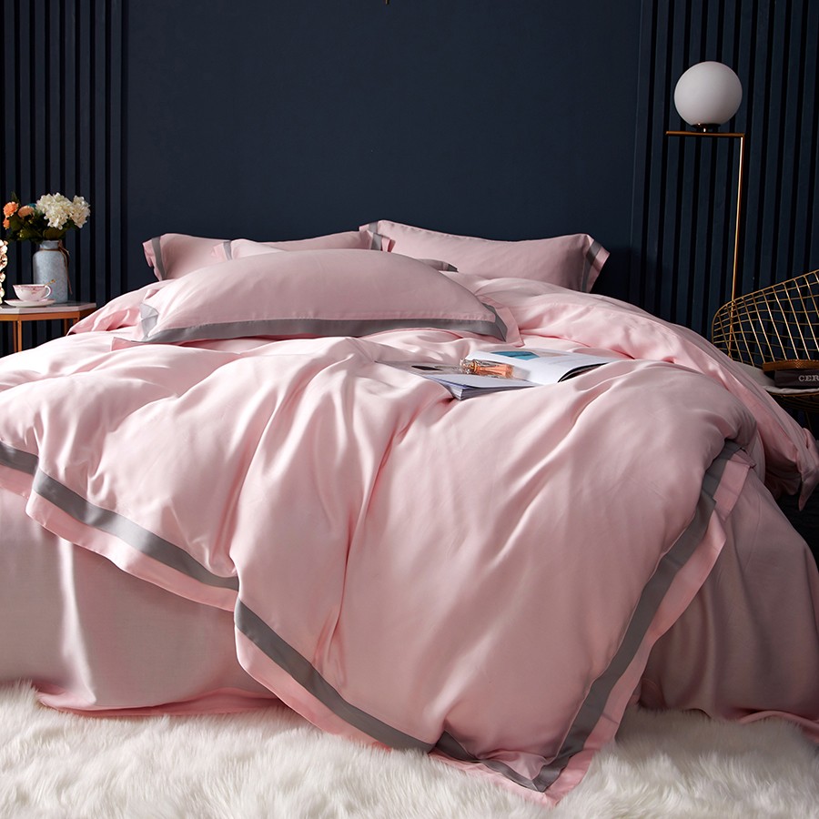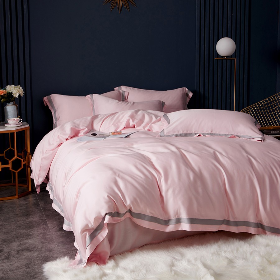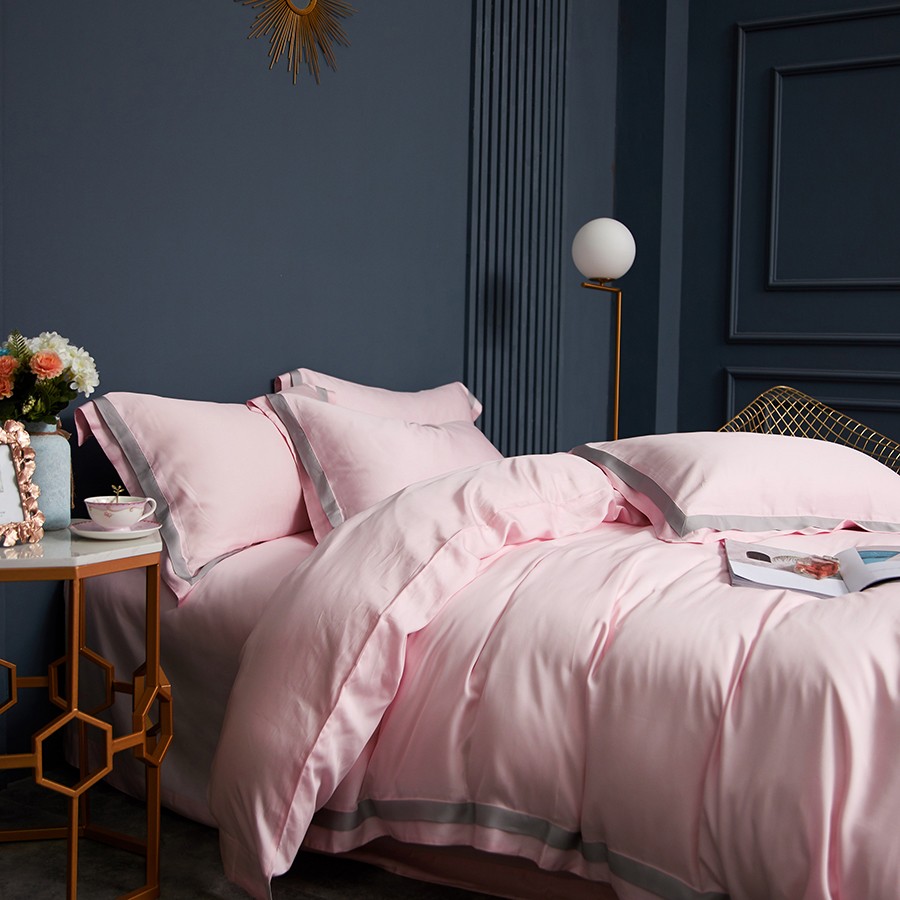 床上用品 純棉四件套 蕾絲工藝 60天絲純色工藝系列 珠光粉