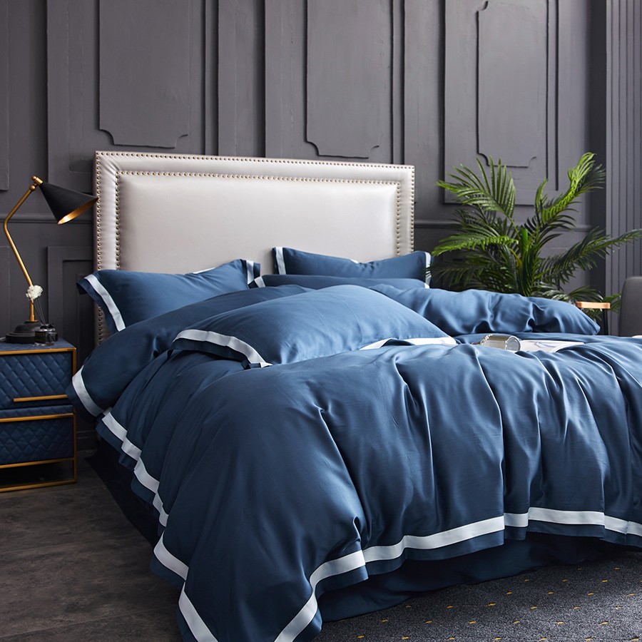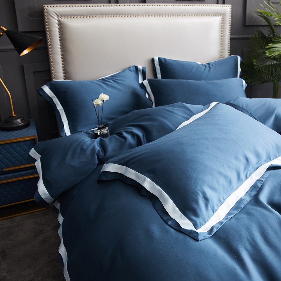 床上用品 純棉四件套 蕾絲工藝 60天絲純色工藝系列 子藍(lán)