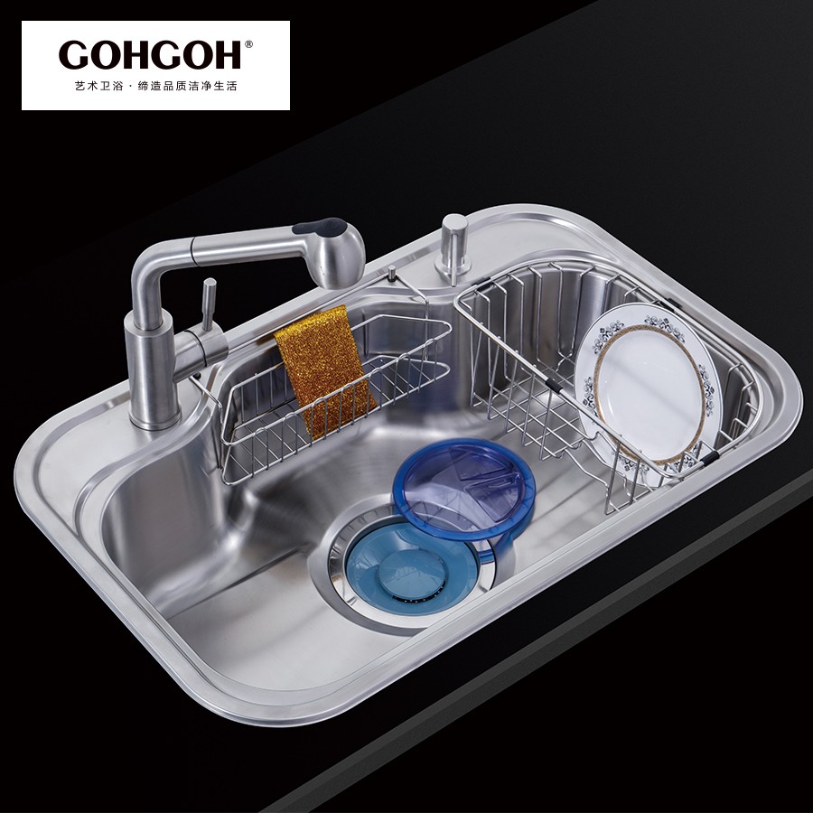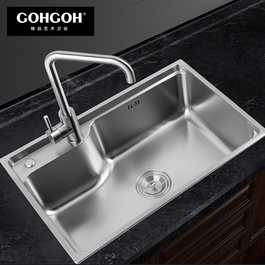 【GOHGOH】廚房水槽單槽304不銹鋼加厚套餐帶龍頭洗碗洗菜盆MT7548
