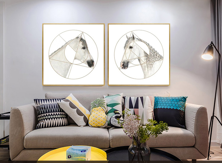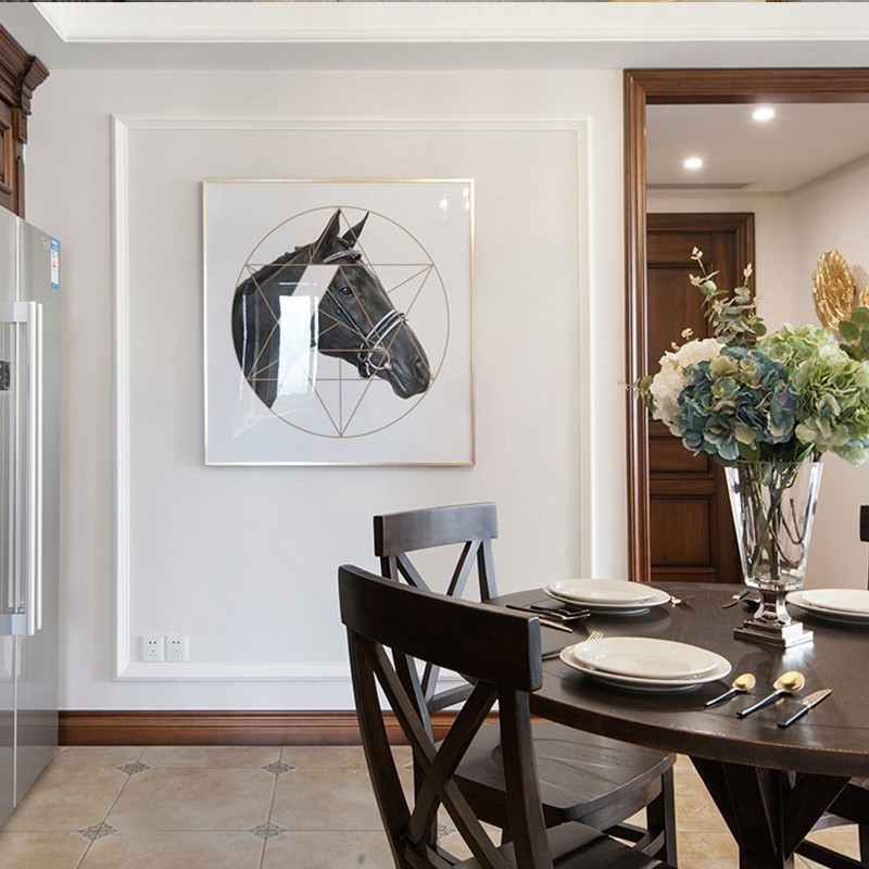 現(xiàn)代簡約幾何圖形壁畫餐廳裝飾畫玄關(guān)掛畫晶瓷畫 純手繪油畫 駿馬