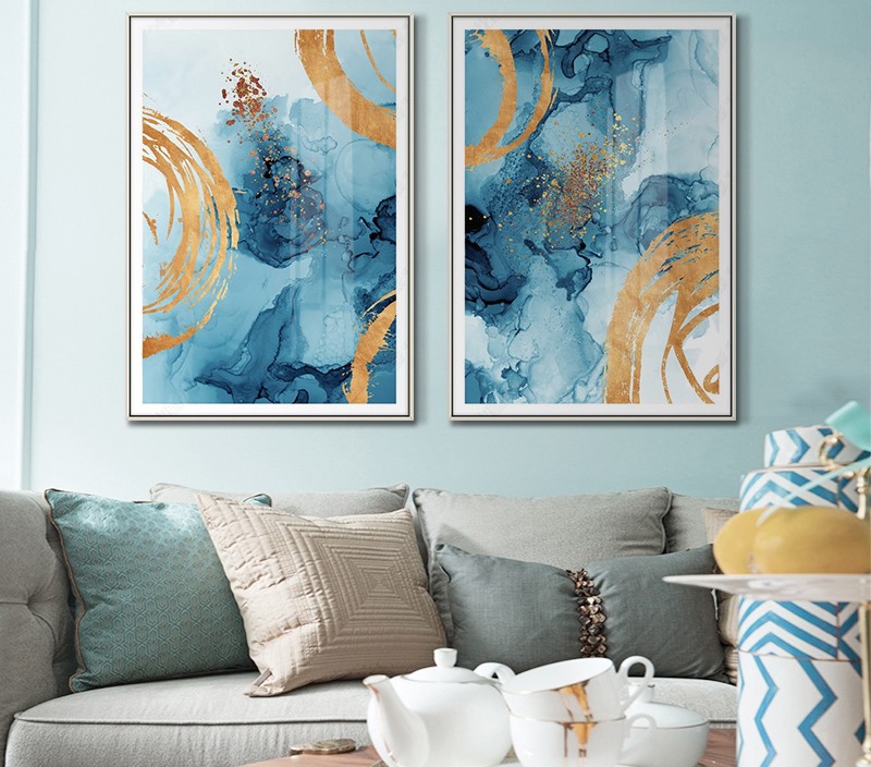 現(xiàn)代簡(jiǎn)約掛畫(huà)玄關(guān)裝飾畫(huà)抽象線條畫(huà)輕奢客廳沙發(fā)壁畫(huà)金屬框兩聯(lián)畫(huà)