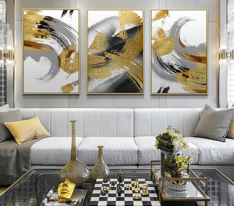 新中式抽象裝飾畫客廳晶瓷畫簡約風(fēng)格金色墨跡餐廳創(chuàng)意壁畫掛畫 純手繪油畫
