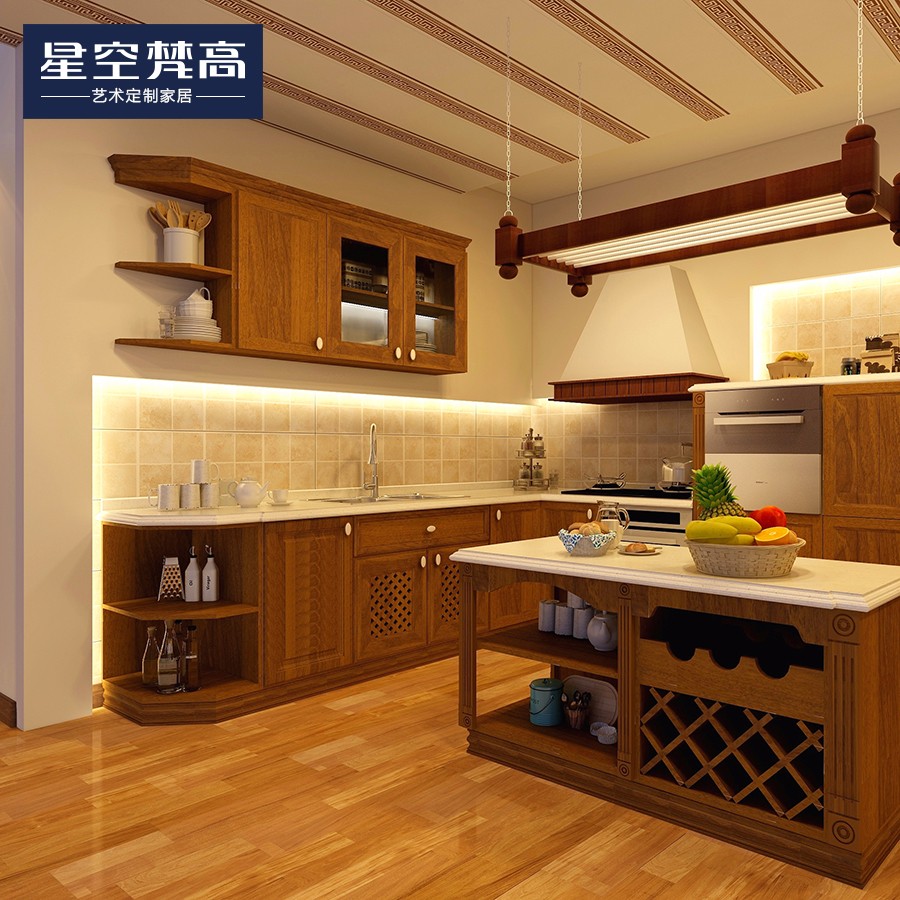 【星空梵高】現(xiàn)代簡約整體定制櫥柜石英石臺面 實(shí)木-龍鳳檀