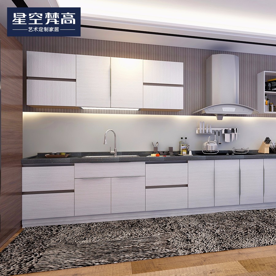 【星空梵高】現(xiàn)代簡約整體定制櫥柜石英石臺面 模壓-萬華禾香板橫紋
