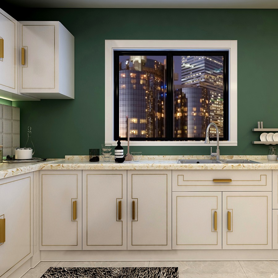 【星空梵高】現(xiàn)代簡(jiǎn)約整體定制櫥柜石英石臺(tái)面 雙飾面-PYK白方格顆粒
