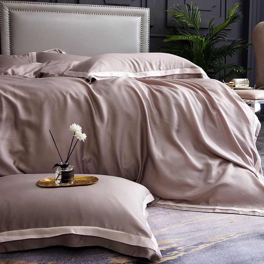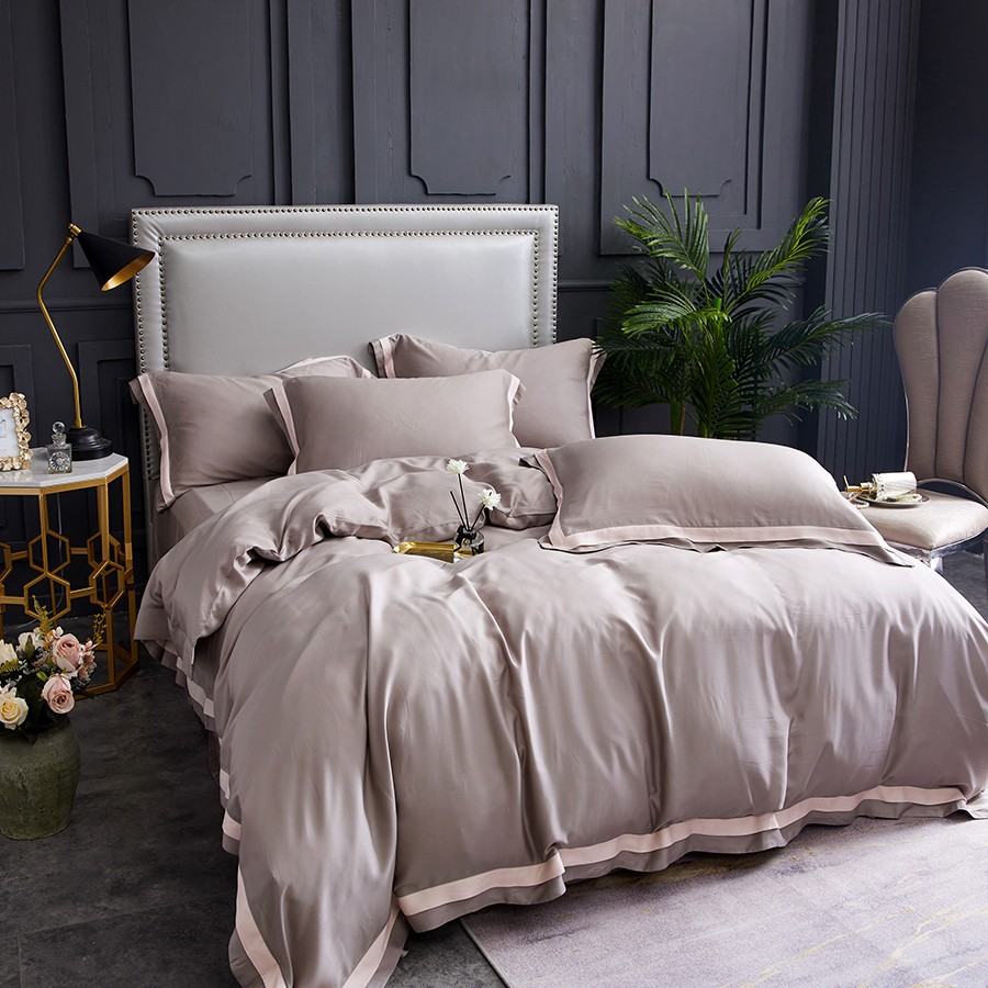 床上用品 純棉四件套 蕾絲工藝 60天絲純色工藝系列 卡其灰